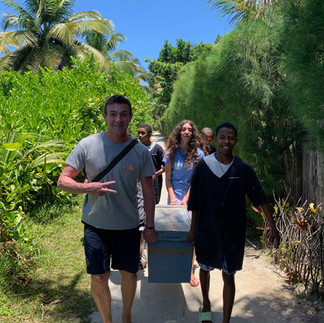 Distribution des dons, briefing, répartition des tâches, distribution des repas, participation aux cours et EPS 🏉
